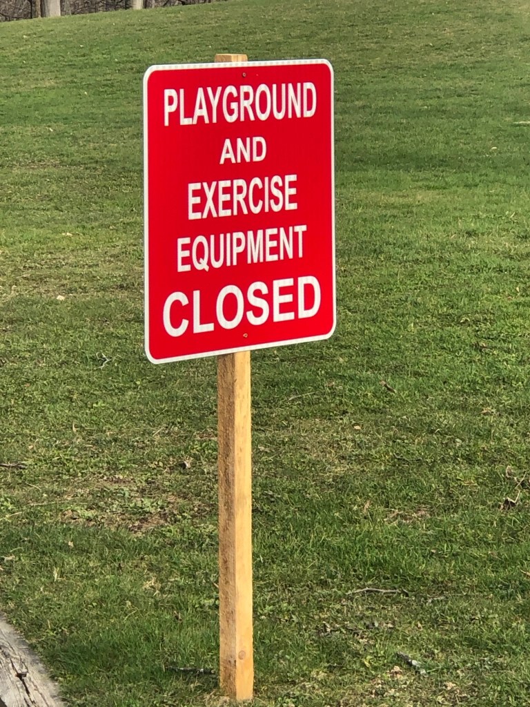 Swing sets without swings – to reduce the risk of sharing the virus.