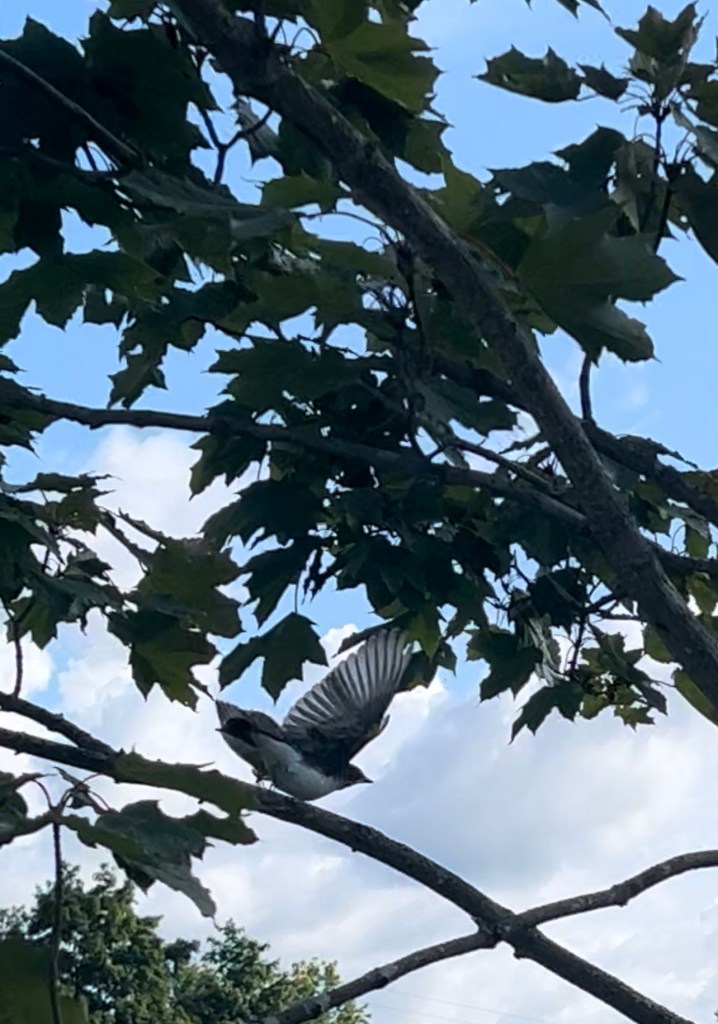 I thought I could take photos of two of them fighting “sometime tomorrow”, since they squawked all day for weeks. But as if they knew I was heading out with my camera, the birds disappeared. I hadn’t seen one in days and then finally, two started chirping again. Then, I saw three babies flying around with the parents. I couldn’t get pics of the babies.