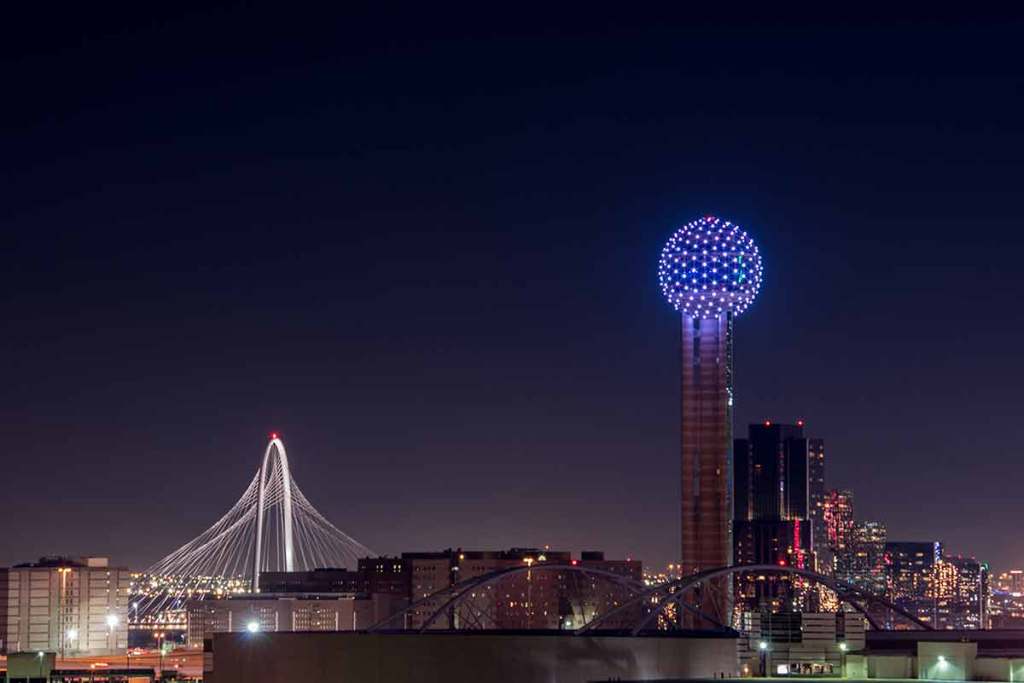 Known as “The Ball”, Reunion Tower is immediately recognizable in the downtown Dallas skyline. Covered in hundreds of bright lights, the tower with a ball at the top is particularly pretty at nighttime, the globe visible on a clear evening further than 15-miles.
