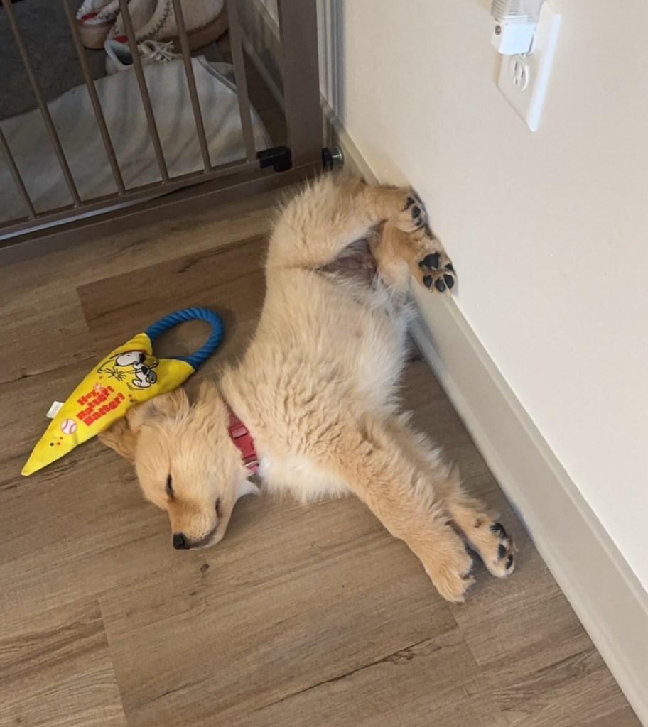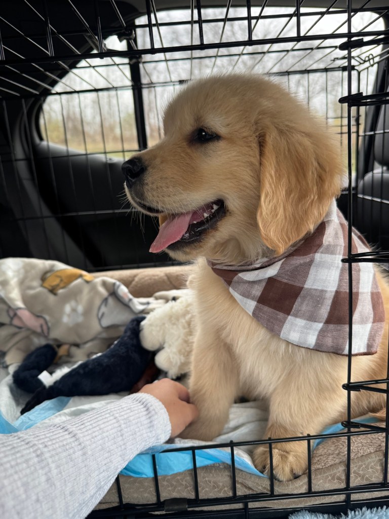 In November, one year after Maverick joined the family, my son and his fiancée brought home a Golden Retriever!