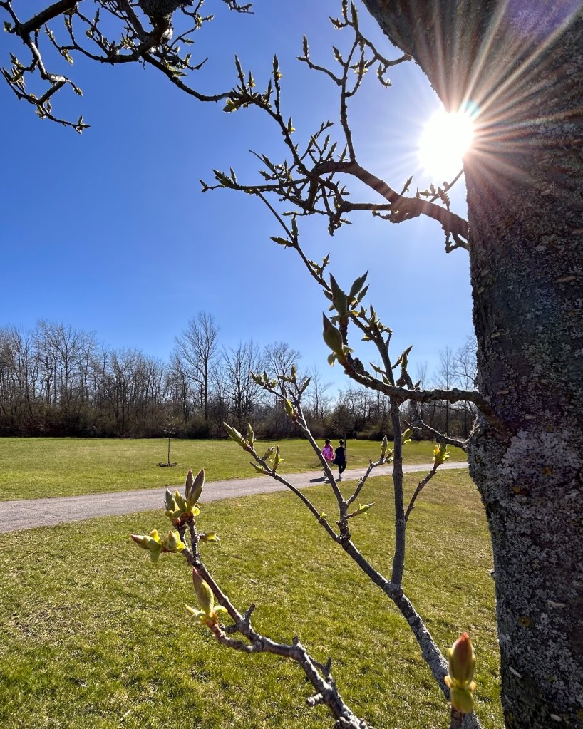 We are still waiting for full blossoms, but in the last five days, a few signs of Spring have sprouted. You can see most trees remain barren, but I’m thankful for the smallest buds!
