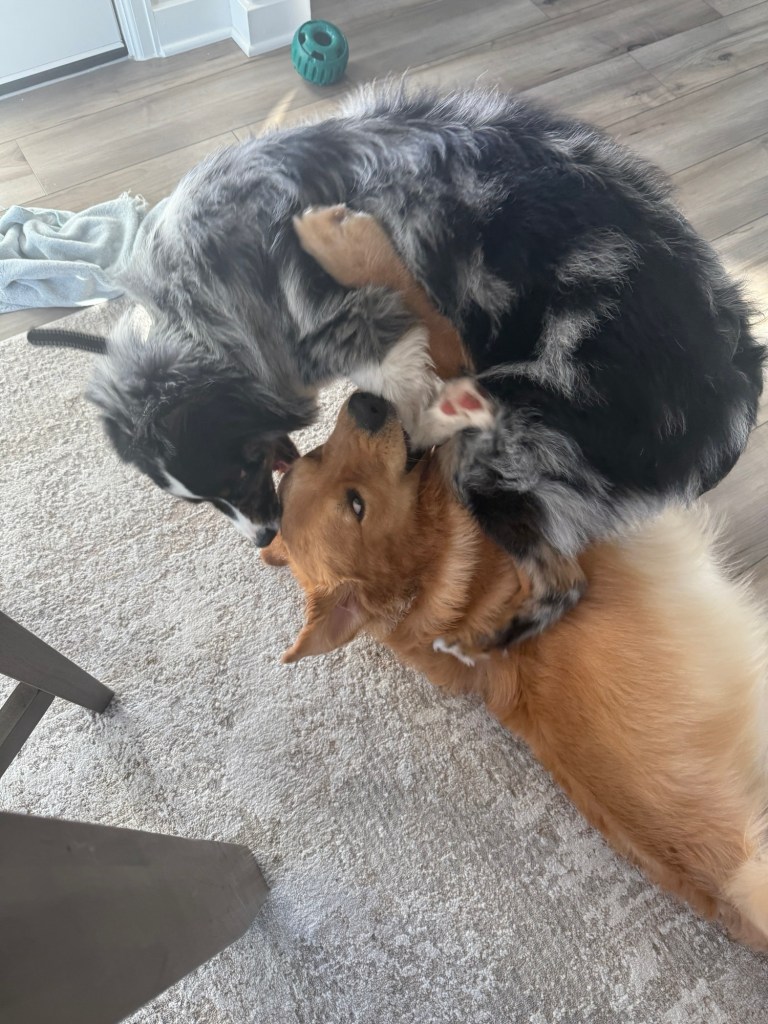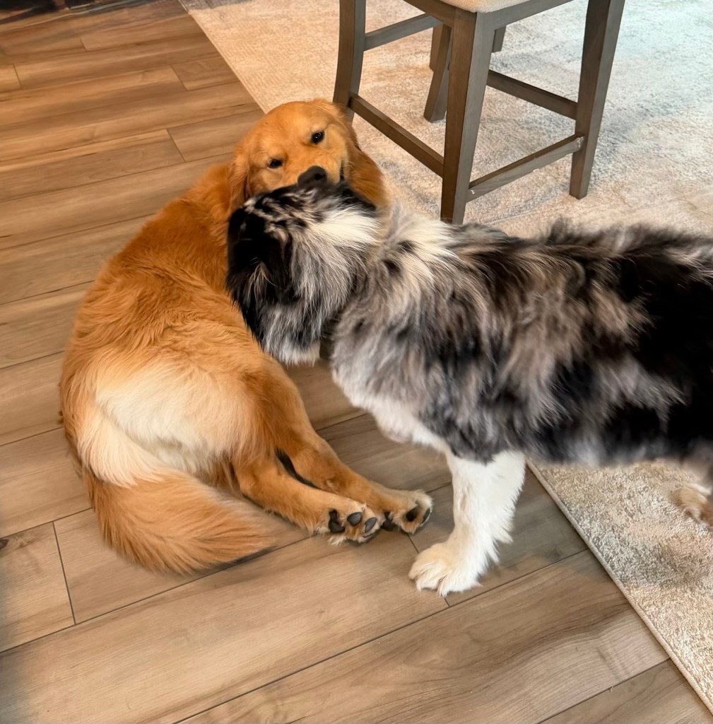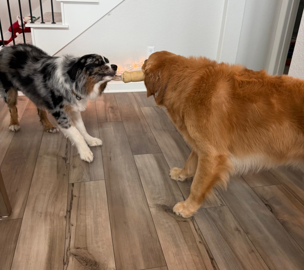 My son didn’t want to leave his golden retriever at home for Christmas, so he drove from NY to TX with an 80lb. golden in the backseat! Judge and Maverick had a great time playing and causing a huge mess everywhere for a week! Fortunately for me, my daughter down the street was willing to host everyone at her new house – including two dogs – since we were surrounded by boxes in our new home. I’m not going to lie – I’m glad that chaos wasn’t at our place!